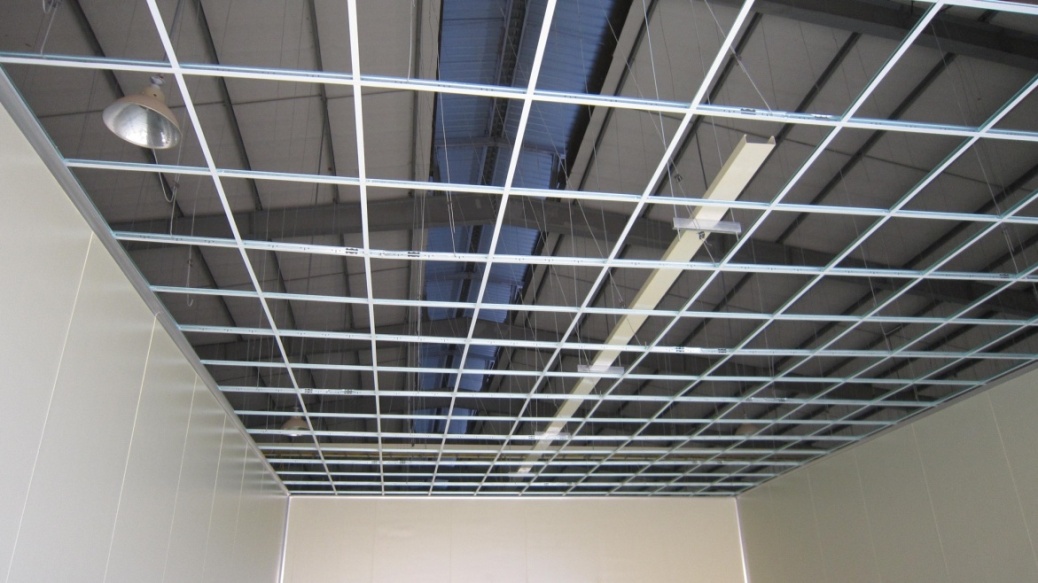 Hệ khung trần nổi: Trần nổi là bộ phận của công trình có tác dụng bao che, cách nhiệt và trang trí nội thất. Hệ thống khung trần nổi sẽ thấy được khung viền phối với tấm trần trước và sau khi công trình hoàn thiện